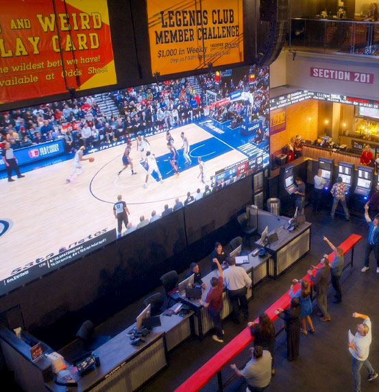 Get ready for your next play at Legends Sportsbook. Our towering 38-foot wide HDTV puts you right in the heart of the action of every game, every day of the week. Place your bets and experience the thrill of the tournament as our massive screen puts you courtside for the madness